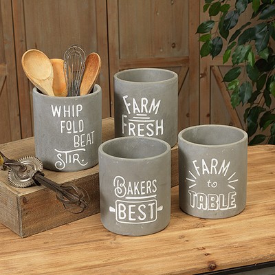 Kitchen Utensil Holder Set 4 Pieces 3 Cement Utensil Crocks