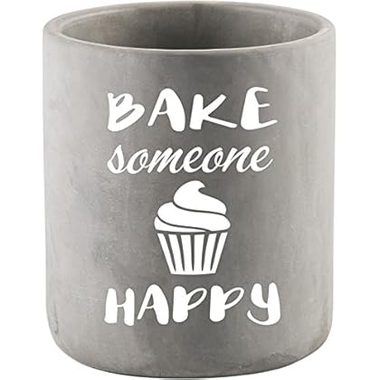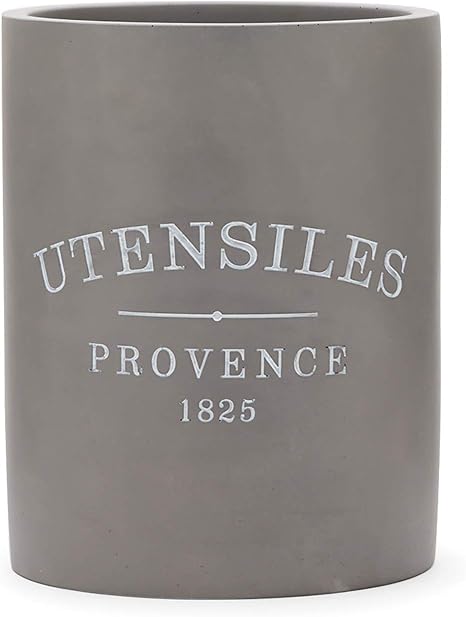 Gracie Oaks Cement Round Utensil Jar With Engraved Utensiles