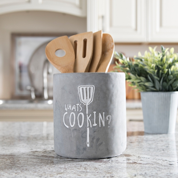 Kitchen Cooking Utensil Holders Fine Embossed Cement Import It All