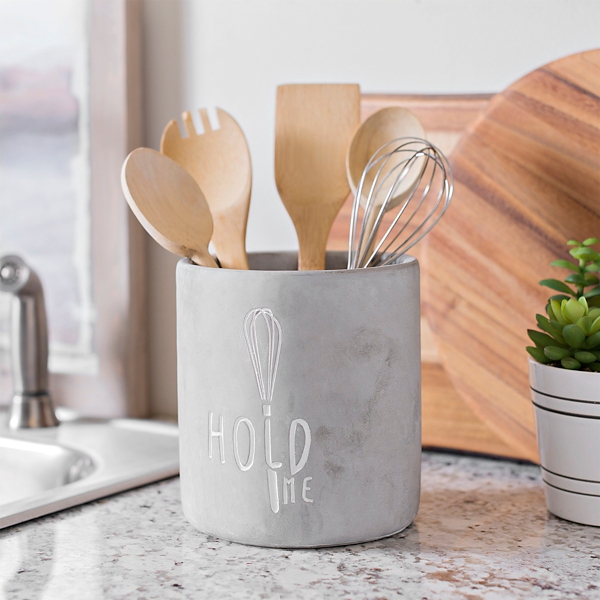 Home Essentials Cement Covered Hold Me Utensil Holder Grey